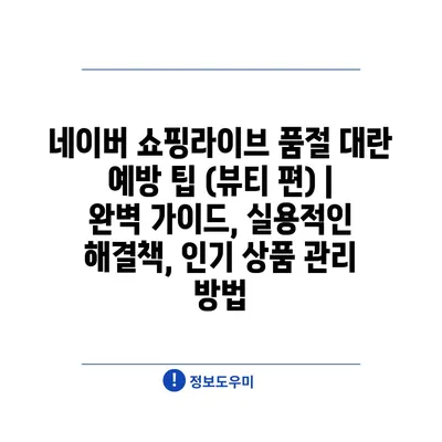 네이버 쇼핑라이브 품절 대란 예방 팁 (뷰티 편) | 완벽 가이드, 실용적인 해결책, 인기 상품 관리 방법