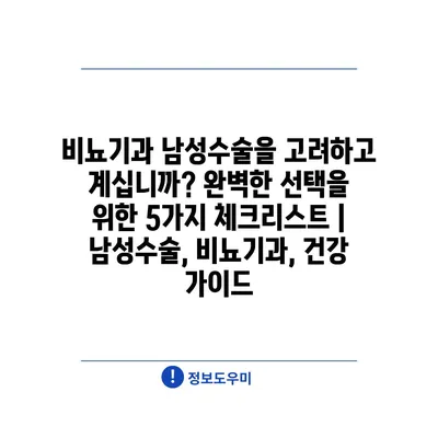 비뇨기과 남성수술을 고려하고 계십니까? 완벽한 선택을 위한 5가지 체크리스트 | 남성수술, 비뇨기과, 건강 가이드