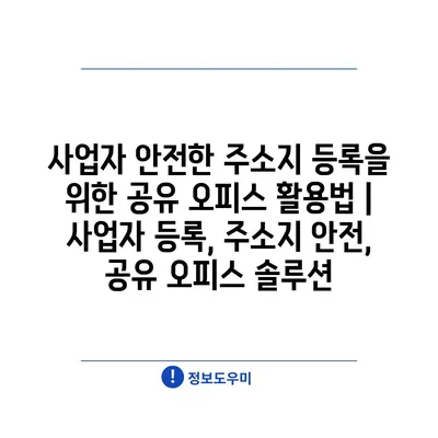 사업자 안전한 주소지 등록을 위한 공유 오피스 활용법 | 사업자 등록, 주소지 안전, 공유 오피스 솔루션