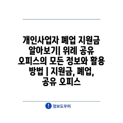 개인사업자 폐업 지원금 알아보기| 위례 공유 오피스의 모든 정보와 활용 방법 | 지원금, 폐업, 공유 오피스