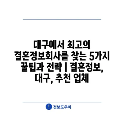대구에서 최고의 결혼정보회사를 찾는 5가지 꿀팁과 전략 | 결혼정보, 대구, 추천 업체